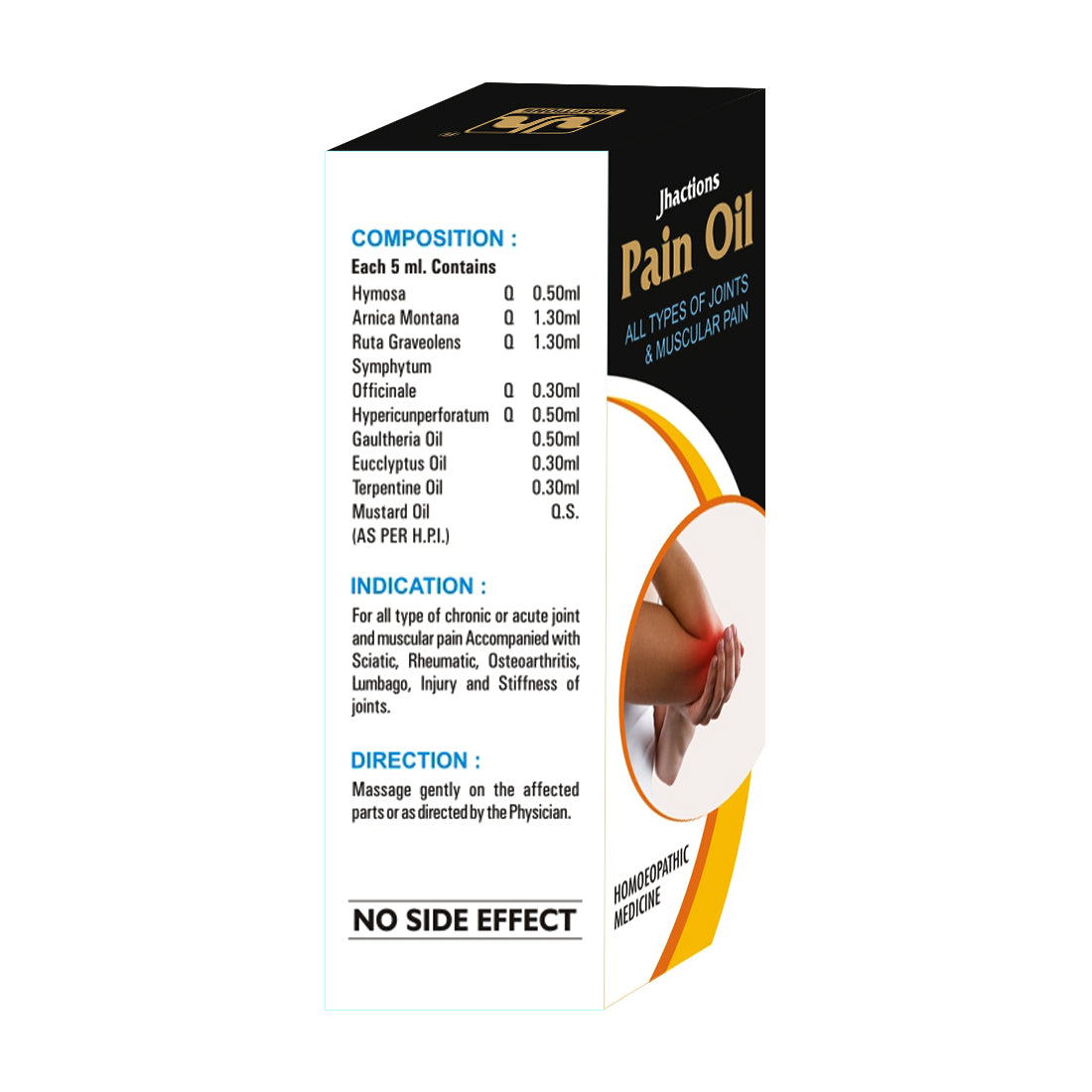 An excellent pain killer oil for various muscular disorders or neuralgic pains, backache, headache, lumbago, osteoarthritis, spondylosis, gout, sprain of limbs with swelling and redness and rheumatism.
