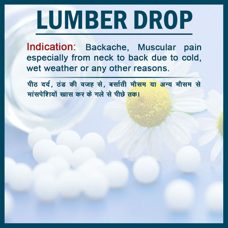 Doses: Relieve back pain with Lumbar Drop. Take 10-20 drops every hour during acute episodes, gradually reducing to 10-20 drops 2-3 times a day. For chronic pain, continue treatment for lasting relief. Consult a specialist if symptoms persist.