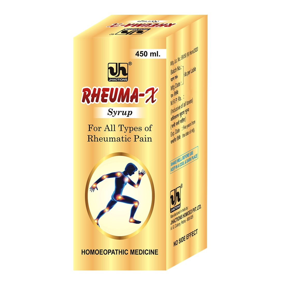 Jhactions Rheuma-X Syrup is a homeopathic remedy that provides relief from various types of pain, such as rheumatic pain, muscle pain, backache, and inflammatory pain in muscles and joints. It is effective in treating acute and chronic pain in the neck, back, and limbs. Take control of your pain with Rheuma-X Syrup.
