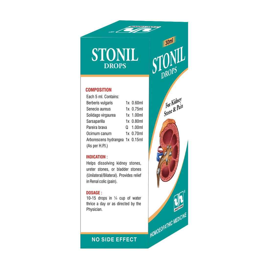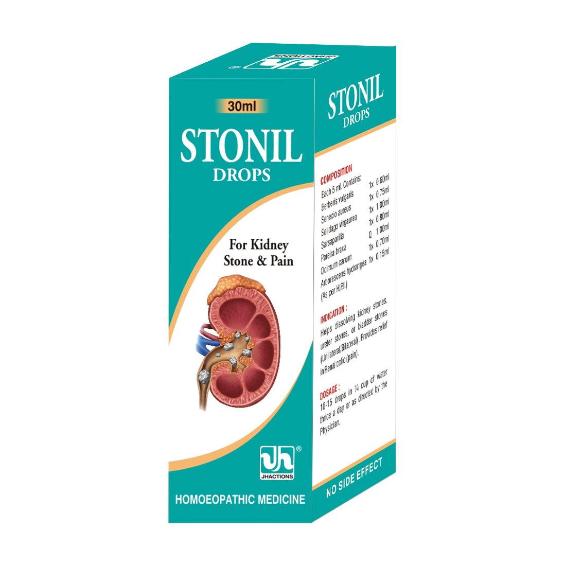 Treat kidney stones naturally with Jhactions Stonil Drops. This homoeopathic medicine relieves pain and discomfort caused by kidney stones, promoting urinary health. Say goodbye to renal colic and ureter stones with this safe and effective solution.