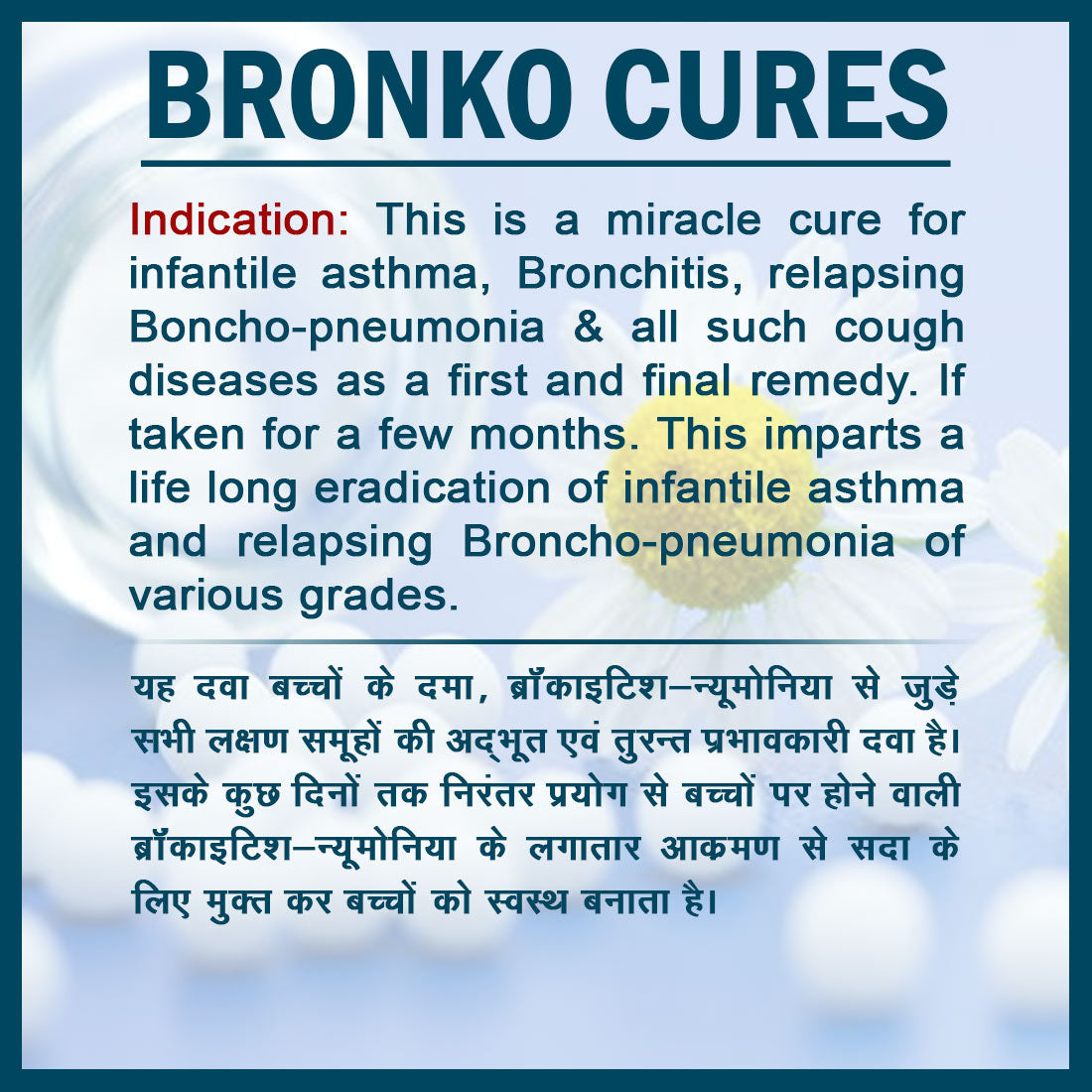 - For infantile asthma, bronco-pneumonia and cough troubles.