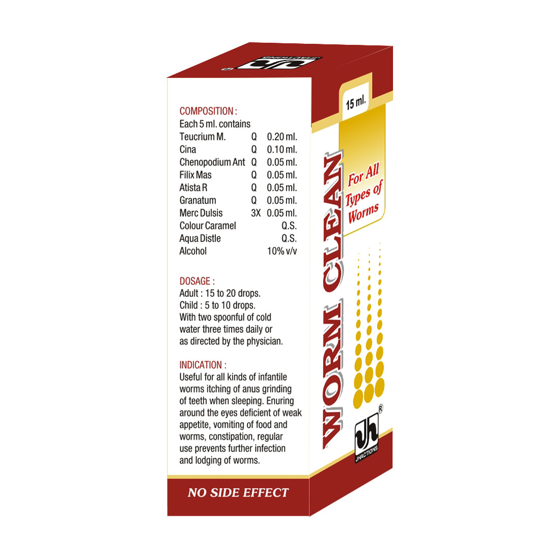 - Jhactions Worm Clean is of value in the medication of worm diseases, as gastro-intestinal irritation, itching of nose, restless sleep, twitching of muscles